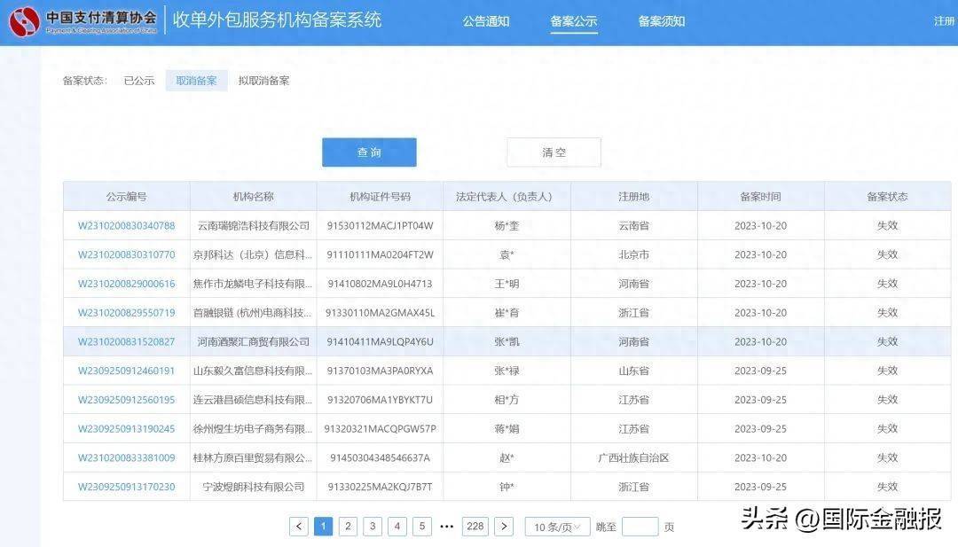 博通咨询资深分析师王蓬博在接受记者采访时指出,多家机构备案失效,各有不同的原因,比如因违规经营外包业务受到监管机构行政处罚,或者因聚焦自身跨境支付和线上互联网支付主业,并未实际开展线下聚合支付业务,备案有效期届满前未重新提出备案申请。